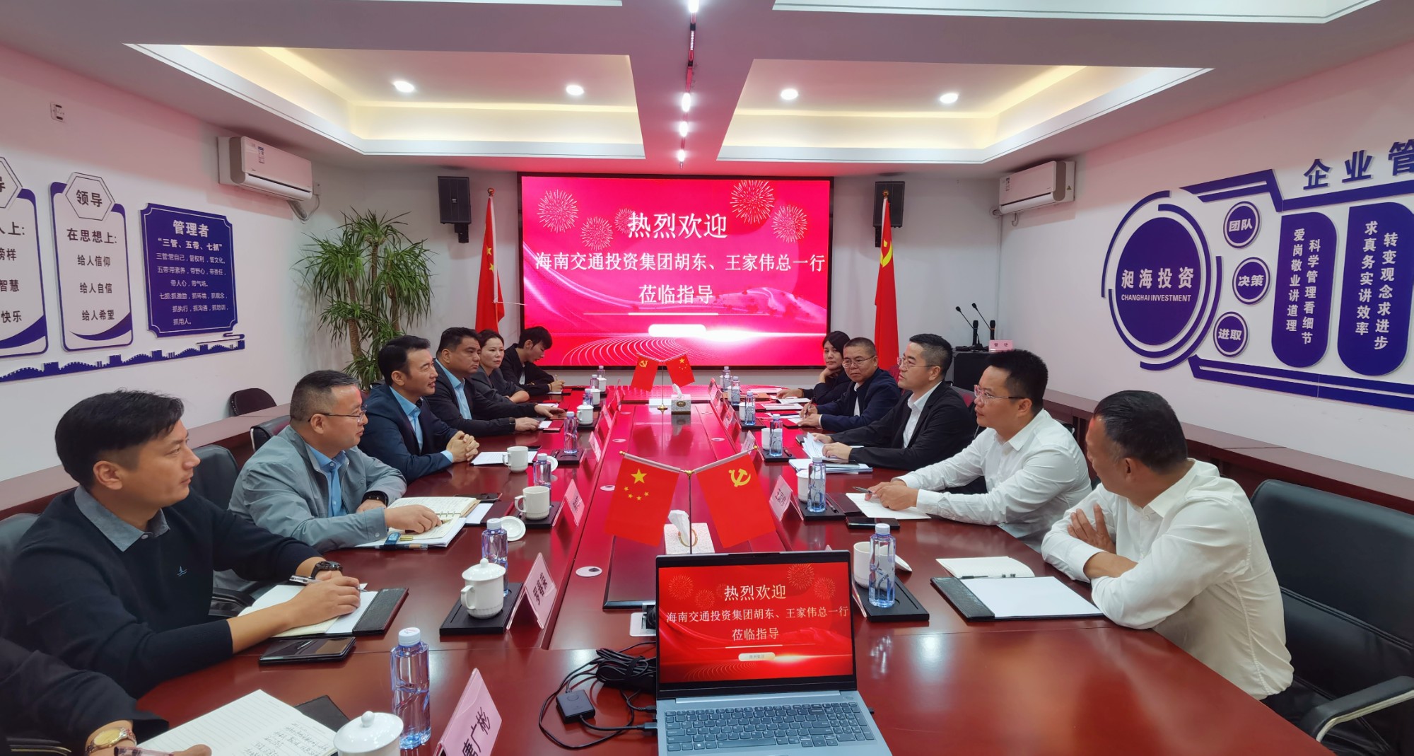 8月21下午,海南省屯昌县副县长王成鸿、县发展控股有限公司总经理陈永坤、县招商专班项目组组员温泽芳莅临昶海投资(集团)有限公司考察。集团董事长周昌海、党支部书记袁海峰、副总裁陈尚文热情接待并深入交流。 集团两办主任唐广彬、海南合资公司副总经理周景龙共同参与…