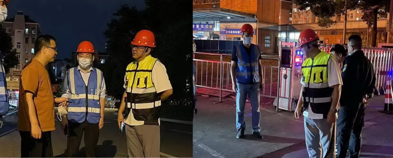 南站项目客流、人流量较大,而且毗邻小区住宅,白天施工影响正常交通通行,夜间施工噪音过大影响周边居民正常生活。例如,动力南五路是项目建设的难点和重点,左侧与居民小区仅一墙之隔,并且位处高架桥匝道下坡路口,项目夜间施工难度可不一般。依据每条路的 情况不同,负责人亲自编制施工方案,针对动力南五路项目部选择车流、人流量较少的晚上施工,并将产生噪音较大的工序尽量安排在晚上11点之前,把扰民程度降到最低。