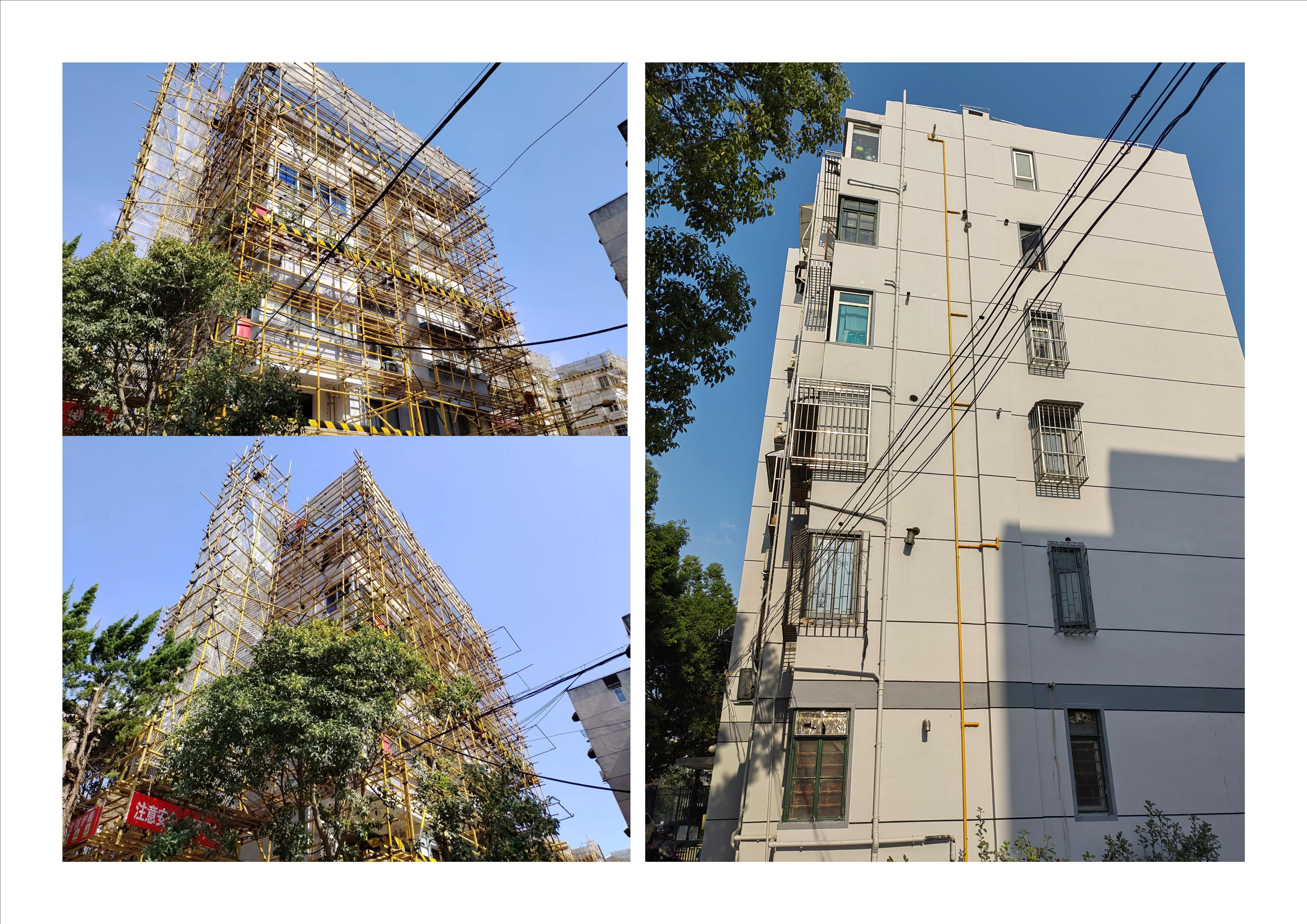 【桃园小区旧住房修缮改造项目】首批6栋腾洲修缮楼宇脚手架陆续拆除,露出真身,受到小区居民好评。
