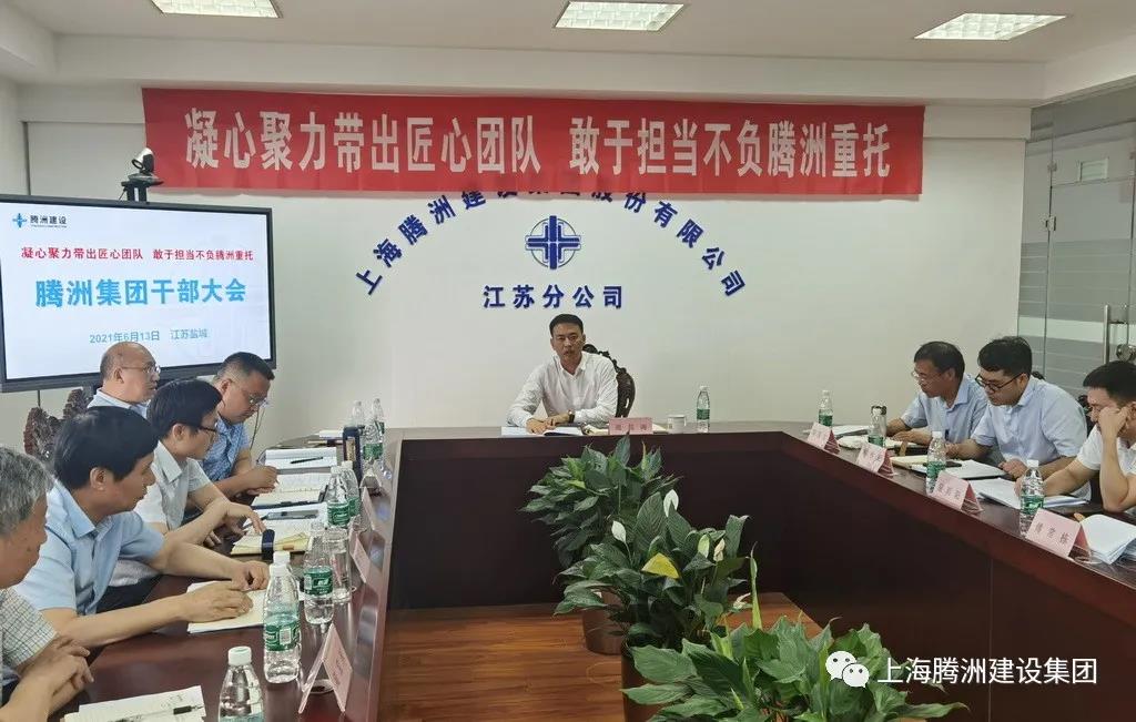 6月13日14时,腾洲建设集团在江苏盐城华邦国际东厦江苏分公司会议室召开了“凝心聚力带出匠心团队,敢于担当不负腾洲重托”主题干部大会。此次大会旨在听取基层意见建议,端正干部思想,加强团队能力建设,推进管理制度完善。集团公司高管、中层干部、项目经理、项目负责人和部分基层员工代表共计41人参加会议;会议由陈尚文副总裁主持。公司董事长兼总裁周昌海出席并作重要讲话。