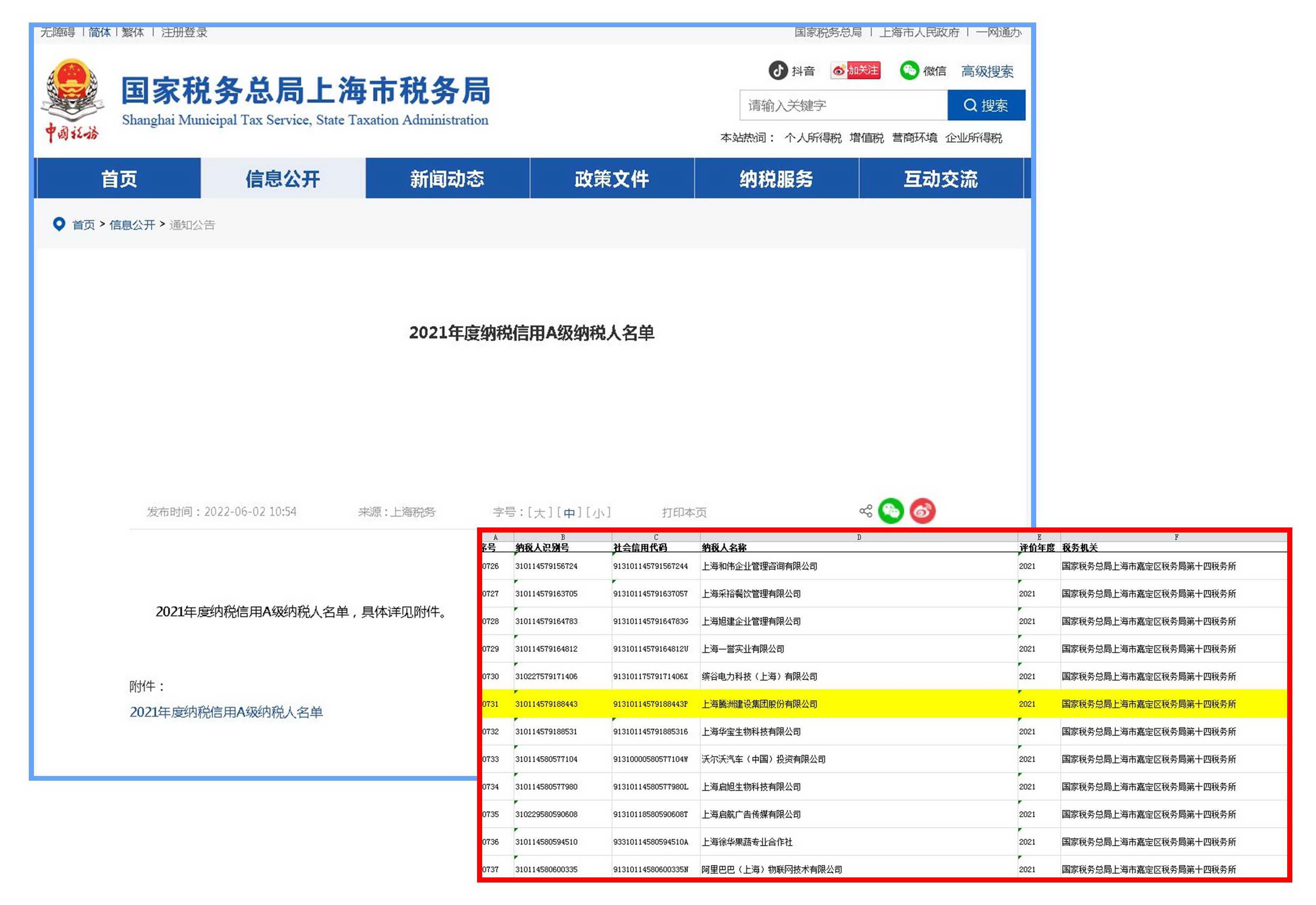 公司经评定入围“2021年度纳税信用A级纳税人名单”