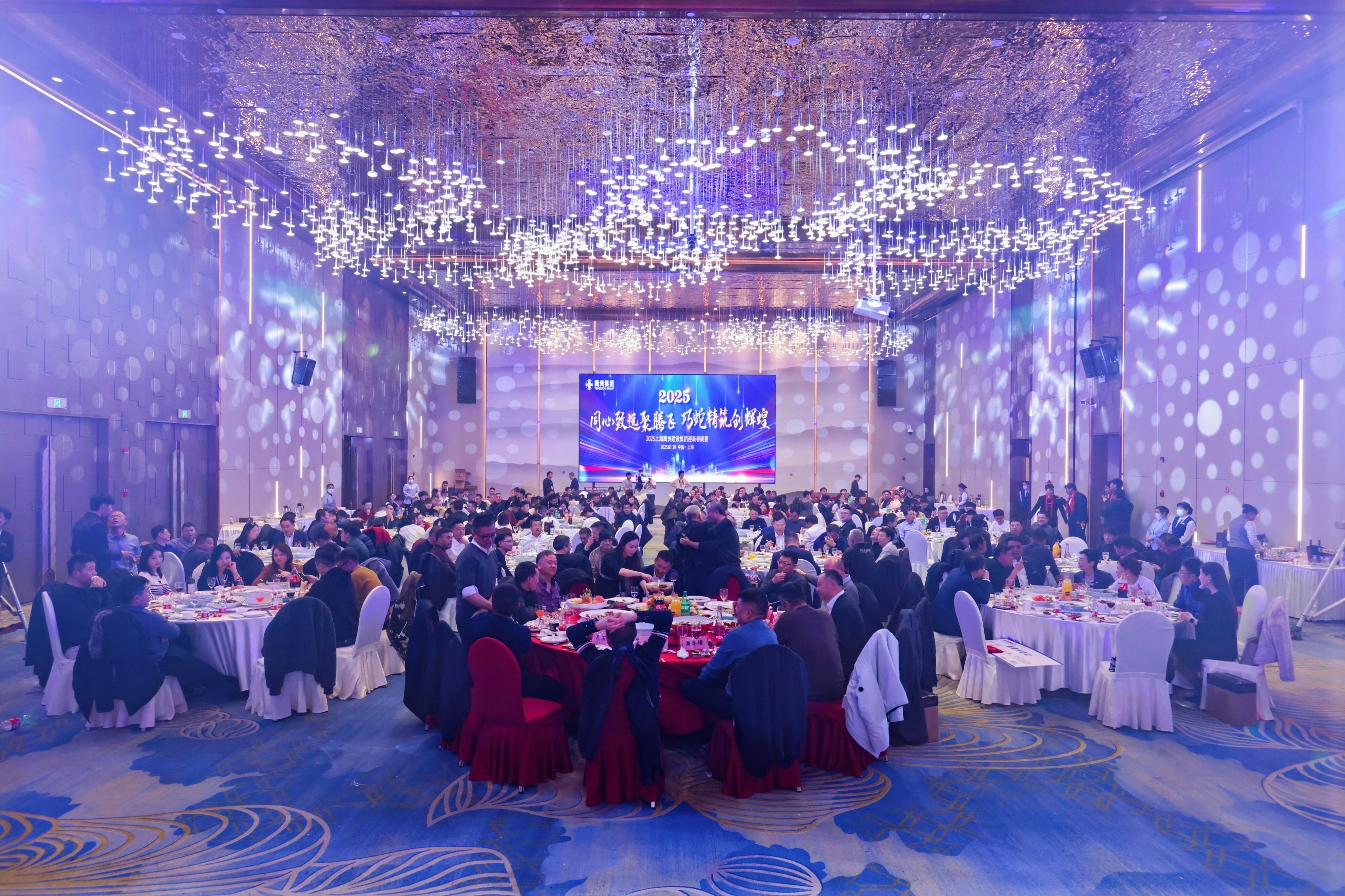 晚宴在活力四射的员工开场舞《相亲相爱》中拉开序幕,舞者们热情洋溢,瞬间点燃现场气氛。紧接着,集团董事长周昌海发表新年致辞,向在场的嘉宾、同仁、员工及家属致以新春的问候与美好祝愿。周董事长深情回顾过去一年,集团在市场竞争中破浪前行,取得了辉煌成就。经营合同额再创新高,项目建设实现质量与效益双丰收。尤为值得骄傲的是,集团获评“2022 - 2023年度上海市先进民营企业”,承建项目更是接连斩获“2023年度上海品质工程”“2023年度上海市白玉兰优质建设工程”“2023年五色工地”等众多高质量奖项。周董事长高度赞扬全体员工的辛勤付出,强调每项成绩都凝聚着每一位腾洲人的心血与汗水。展望未来,周董事长为集团勾勒出清晰的发展蓝图,激励大家在新的一年同心致远、携手奋进、勇拓精筑,共同铸就更加灿烂的明天。