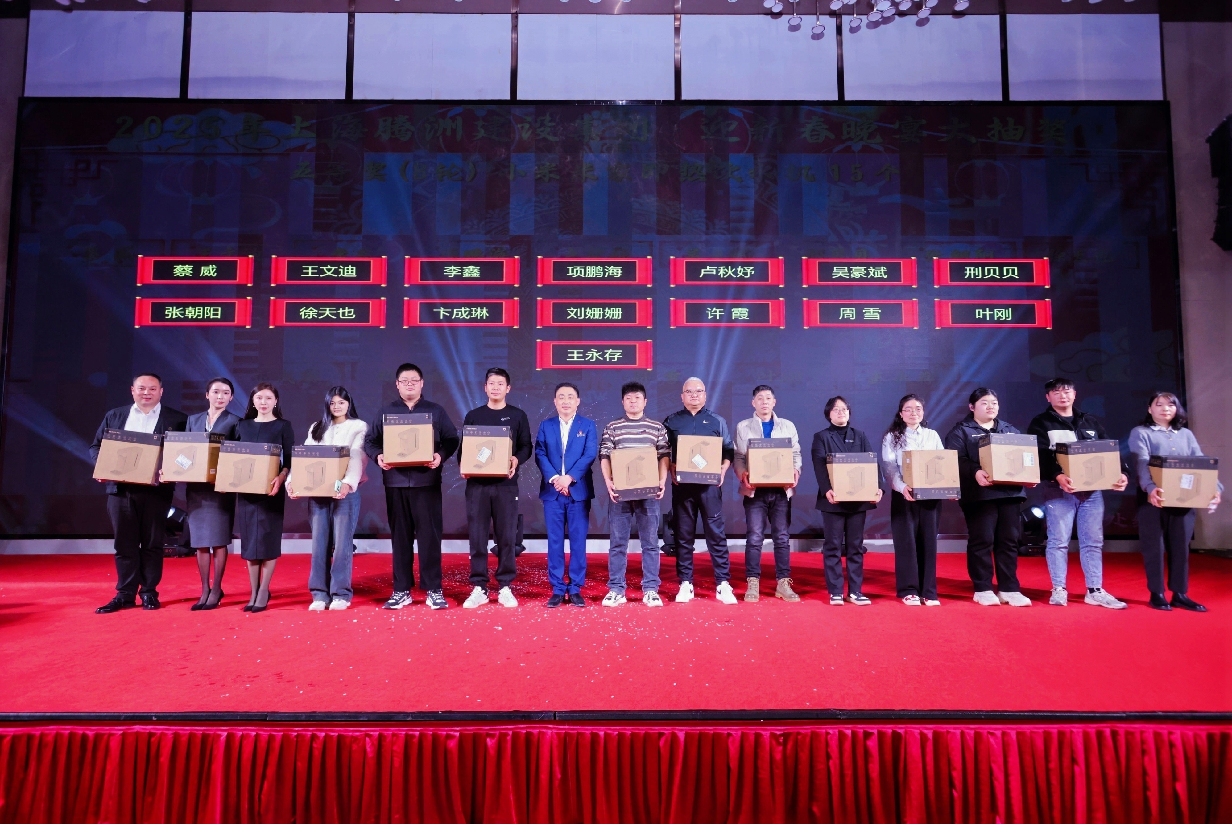 晚宴期间,激动人心的抽奖环节让现场气氛持续升温。丰厚奖品琳琅满目,从小巧精致的金饰到高端电子产品,每一次抽奖都伴随着台下员工紧张的期待与热烈的欢呼。中奖者欢呼雀跃,未中奖的员工也热情高涨,纷纷为幸运儿送上真挚祝福。