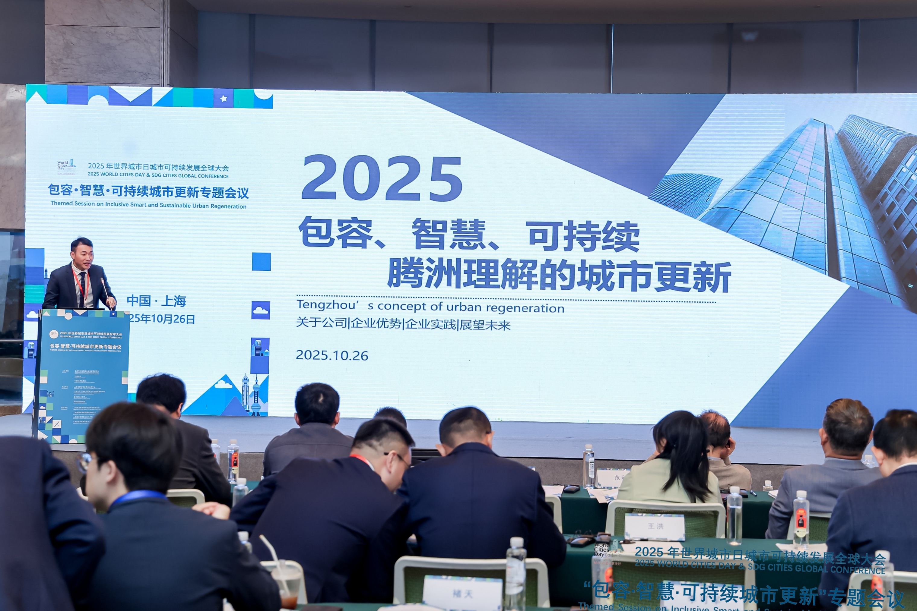 10月26日下午,2025年世界城市日城市可持续发展全球大会在浦东新区新华社中国经济信息社上海总部隆重召开。本次大会主题为“包容·智慧·可持续城市更新”,会议由上海市住房和城乡建设管理委员会、上海大学、新华社中国经济信息社主办。集团董事长周昌海应邀出席大会,并在大会核心板块——“以城市更新探索可持续发展新路径”专题研讨会上作交流发言。